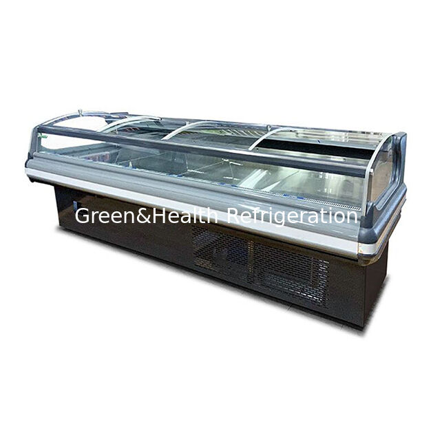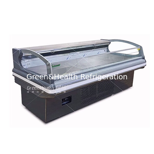 1. Chłodziarki do ekspozycji świeżego mięsa w stylu europejskim charakteryzują się eleganckim, nowoczesnym designem inspirowanym estetyką europejską, z zakrzywionymi szklanymi panelami i minimalistycznymi ramami, które zwiększają atrakcyjność wizualną w środowisku handlowym, jednocześnie maksymalizując widoczność produktu.